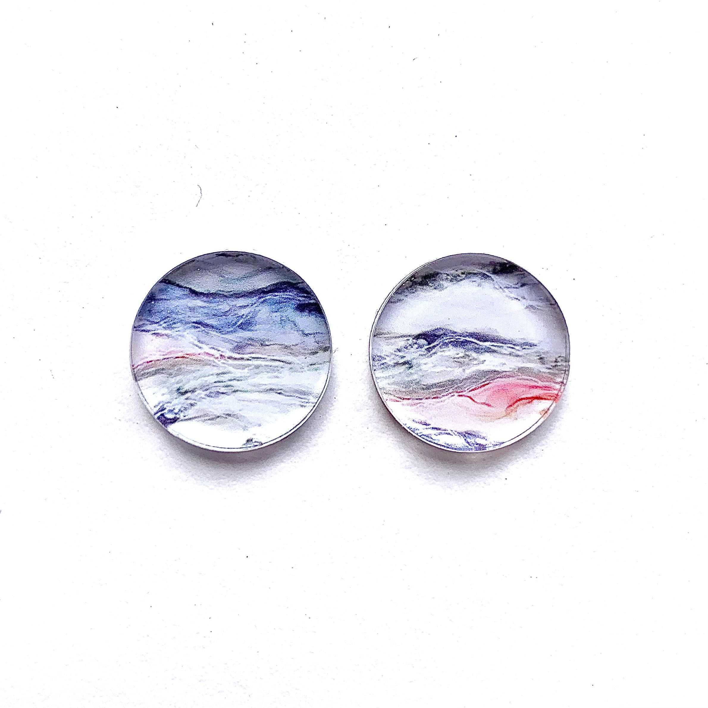 This stunningly vibrant set of earrings features sections from one of Celeste's most sought after original ink artworks. All designed by Celeste herself, printed locally and hand assembled in her studio. These gorgeous earrings are light weight and are absolute show stoppers! Beautifully boxed and presented making them a perfect gift idea for yourself or someone else!