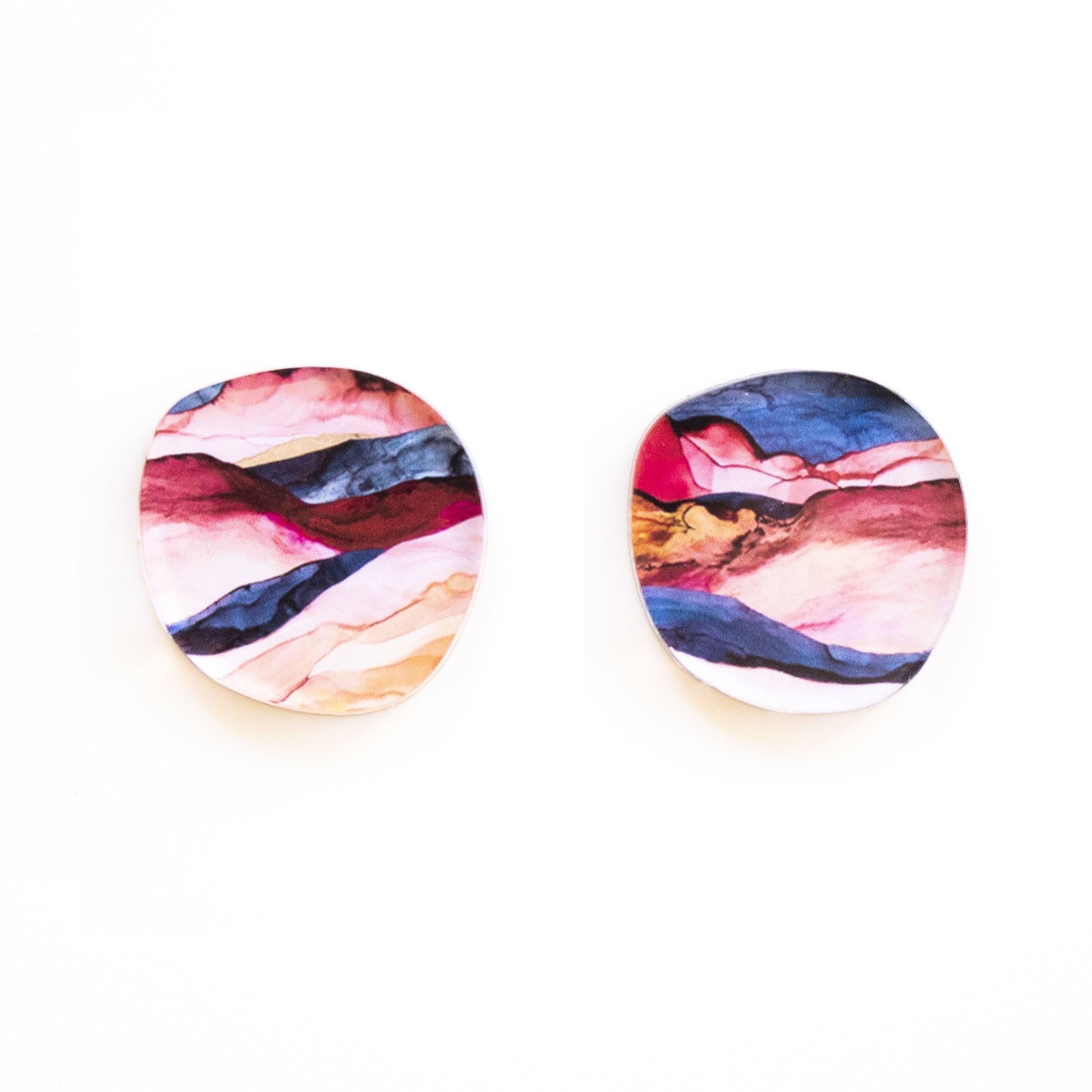 This stunningly vibrant set of earrings features sections from one of Celeste's most sought after original ink artworks. All designed by Celeste herself, printed locally and hand assembled in her studio. These gorgeous earrings are light weight and are absolute show stoppers! Beautifully boxed and presented making them a perfect gift idea for yourself or someone else!