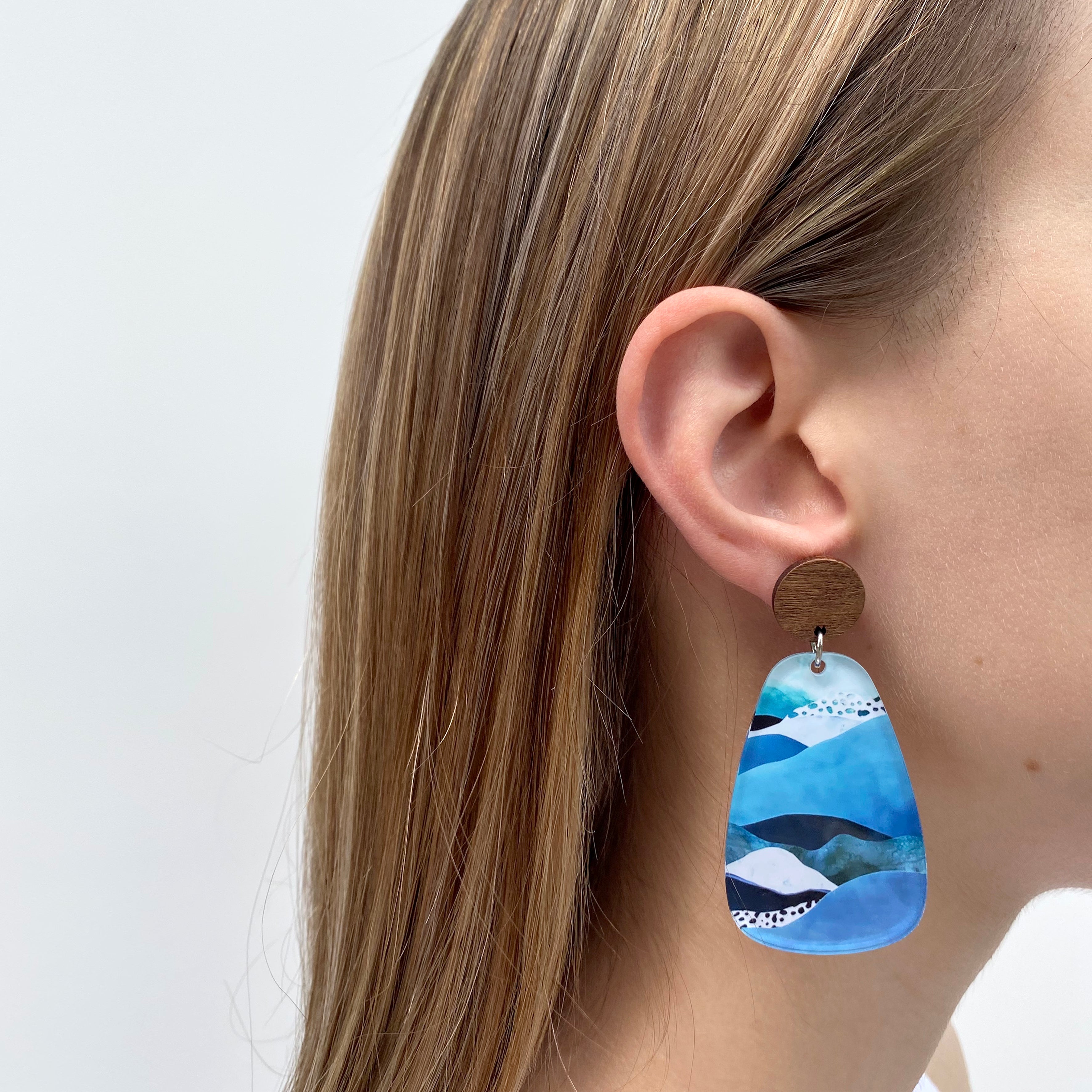 This stunningly vibrant set of earrings features sections from one of Celeste's most sought after original ink artworks. All designed by Celeste herself, printed locally and hand assembled in her studio. These gorgeous earrings are light weight and are absolute show stoppers! Beautifully boxed and presented making them a perfect gift idea for yourself or someone else!