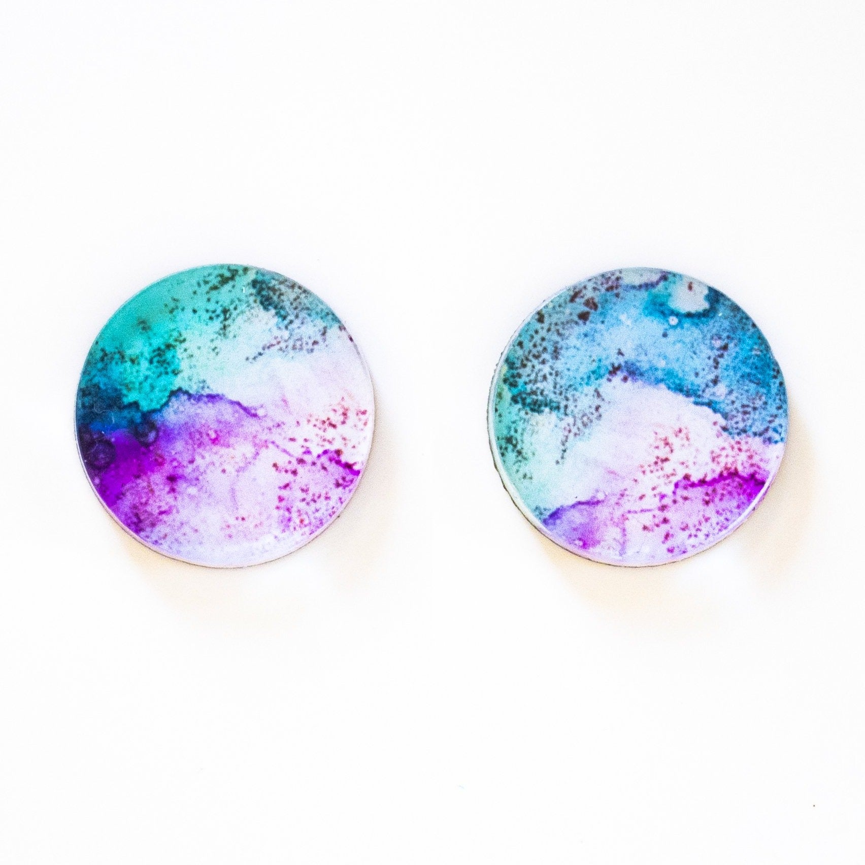 This stunningly vibrant set of earrings features sections from one of Celeste's most sought after original ink artworks. All designed by Celeste herself, printed locally and hand assembled in her studio. These gorgeous earrings are light weight and are absolute show stoppers! Beautifully boxed and presented making them a perfect gift idea for yourself or someone else!