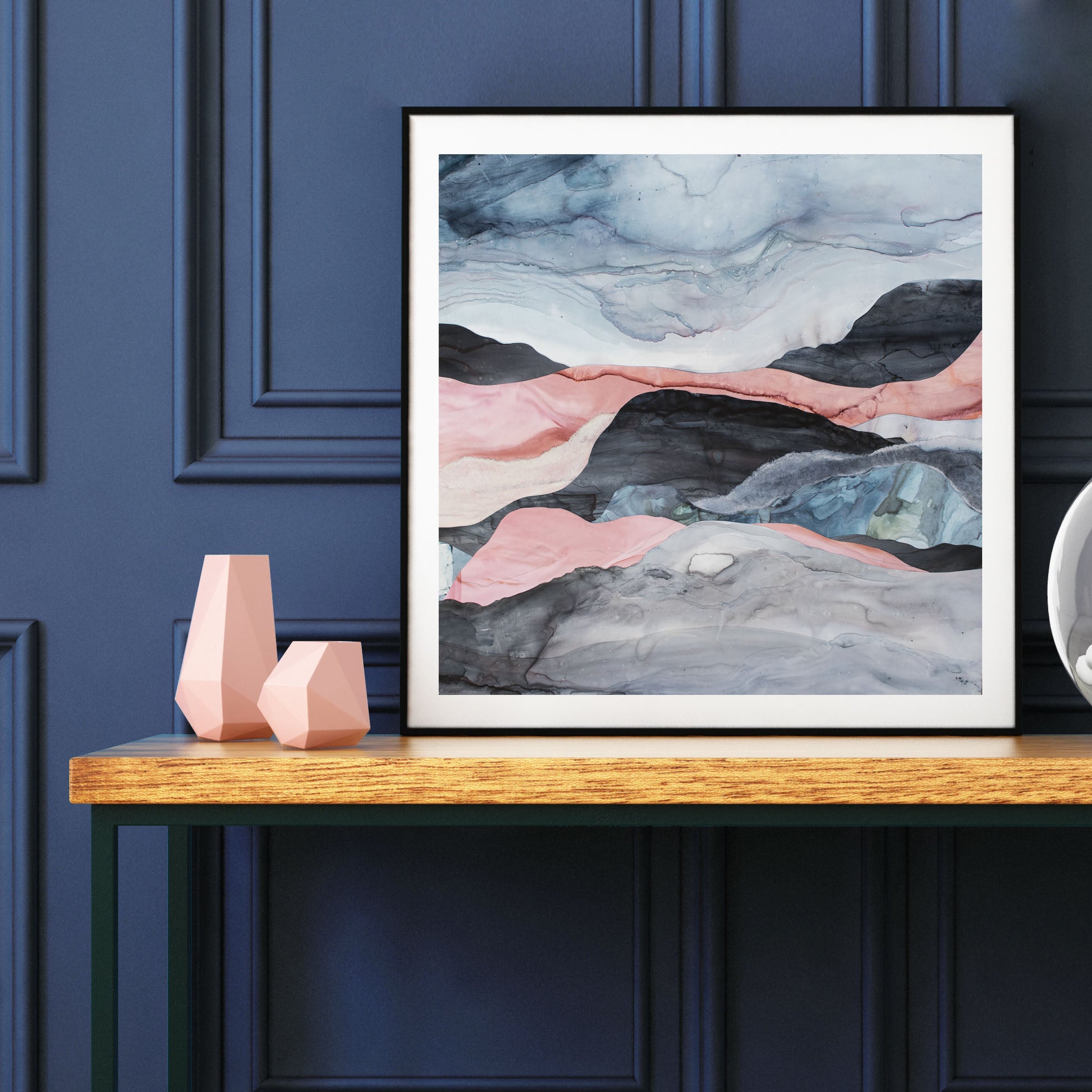 This collection incorporates Celeste's signature ink paintings, with mixed media collage, beautifully arranged organic forms and tranquil line work, reminiscent of the play of light and colour upon mountains, sky and sea.