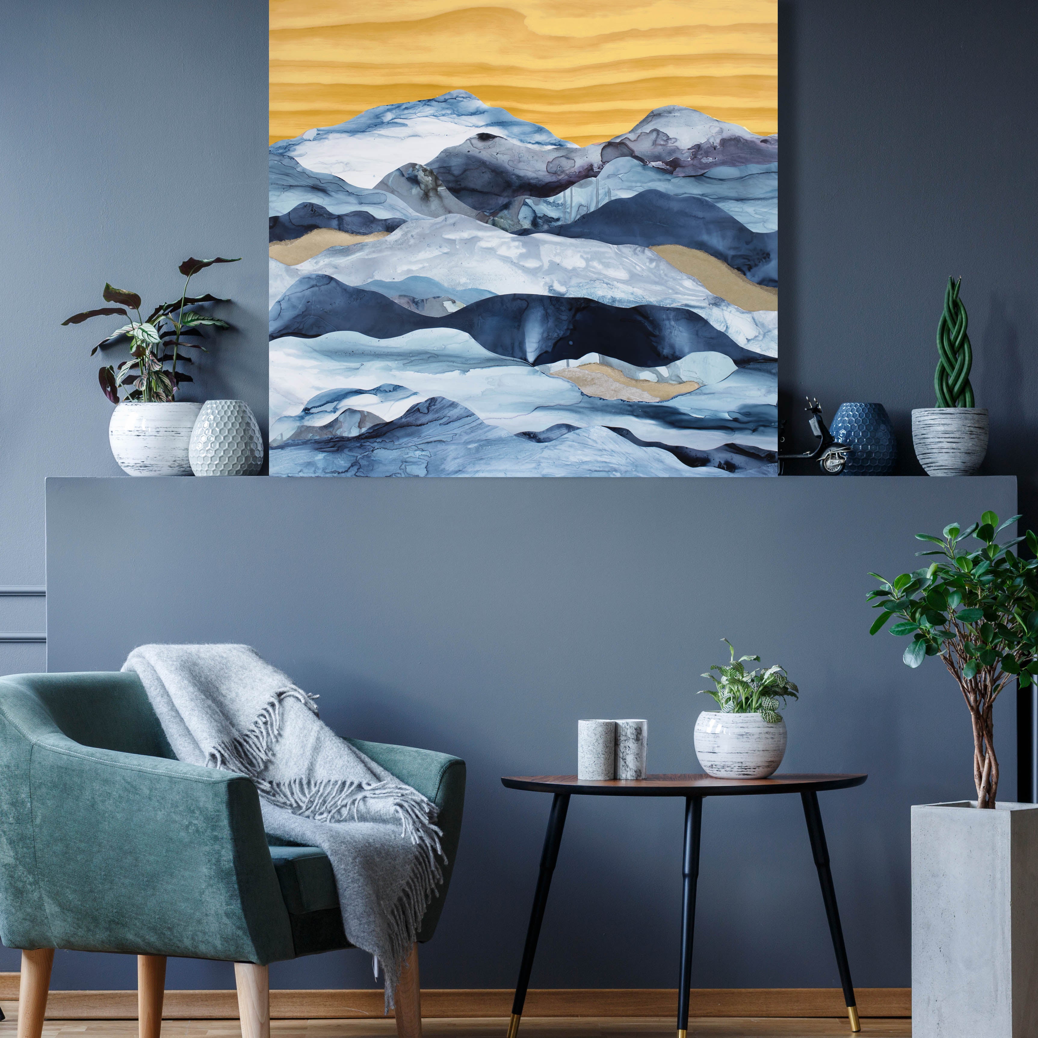 This collection incorporates her signature ink paintings, with mixed media collage, beautifully arranged organic forms and tranquil line work, reminiscent of the play of light and colour upon mountains, sky and sea.