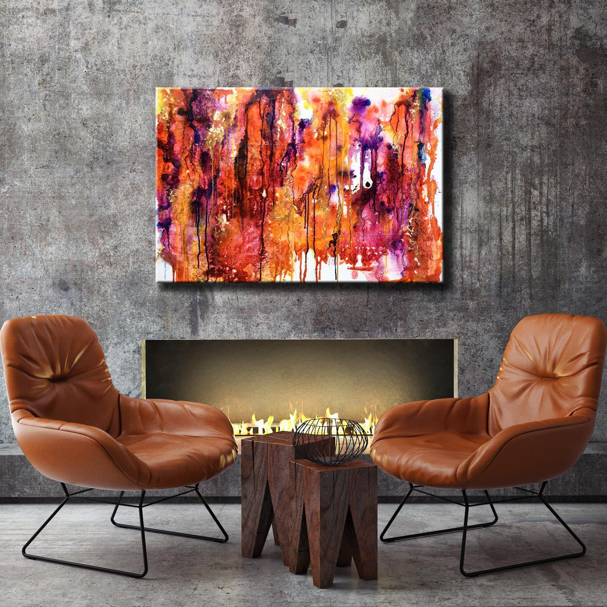 “Falling” is a warm abstract original acrylic and ink painting with gold leaf, by sought after contemporary Sydney artist Celeste Wrona. This painting has a high gloss acrylic finish and was inspired by the colours and textures of the autumn season. As the gold tones of the autumn leaves slowly fall from the trees the artist is taken by the movement, texture and richness of hues that surround her at this time of year.