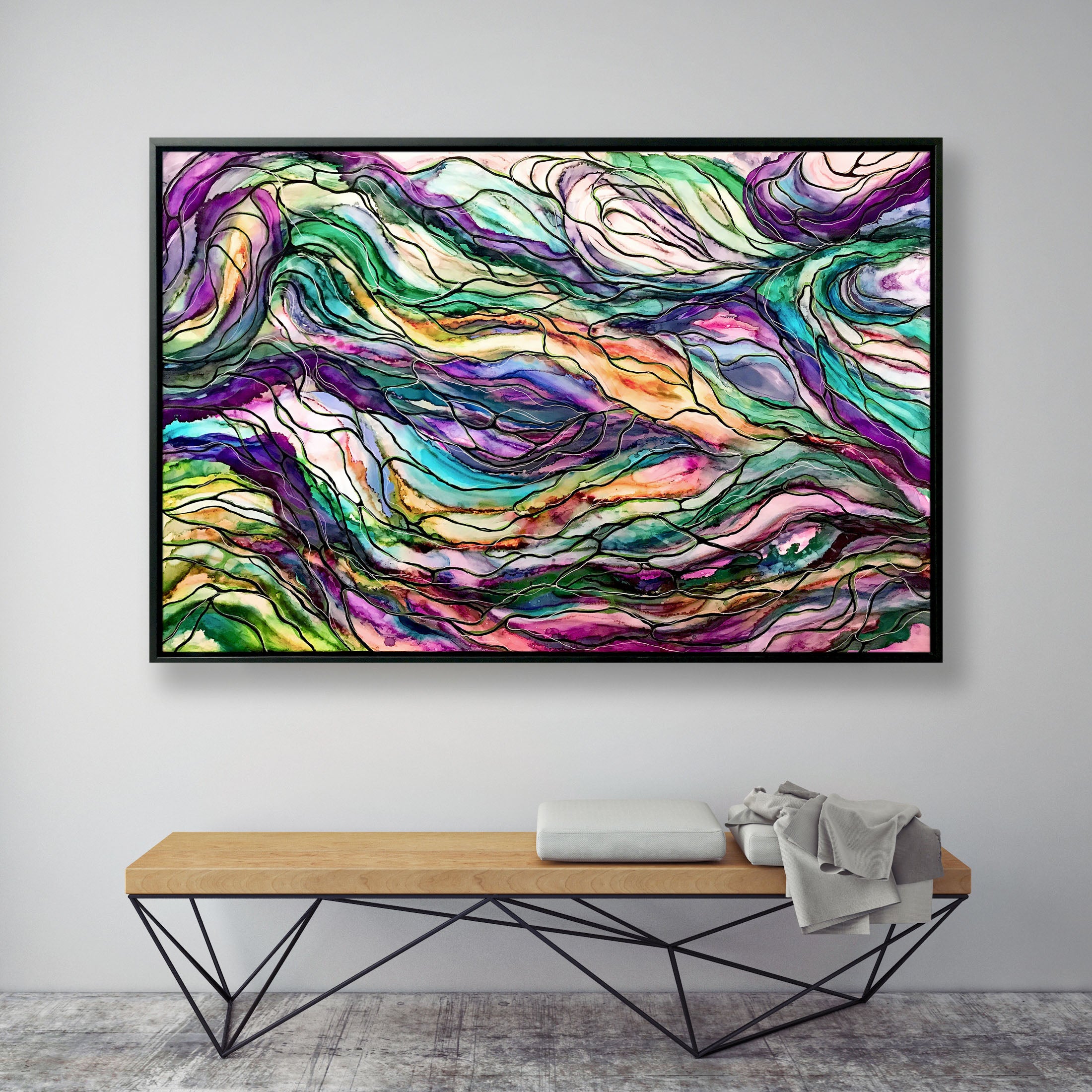Ink on Paper Mounted - Framed in Black Wood Frame