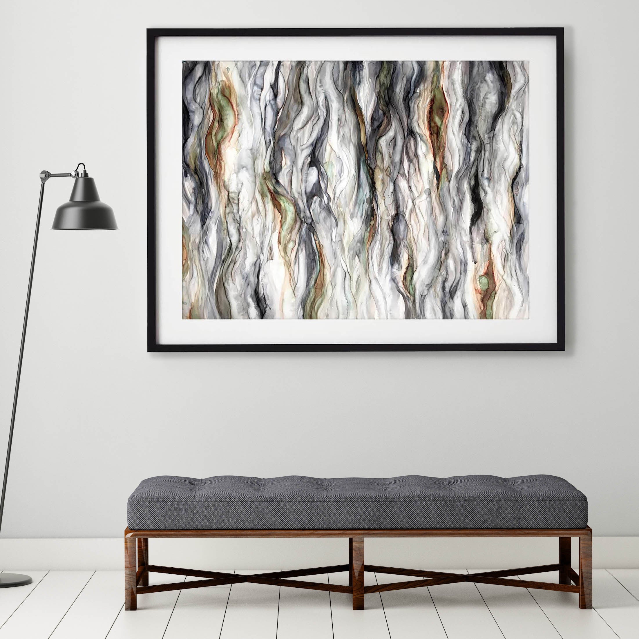 “Smith’s Creek Gum” is inspired by the layers of bark that slowly reveal themselves, to bare the beauty of the ghostly gum’s flesh beneath. Celeste’s home and studio are situated on the outskirts of Sydney, surrounded by the gorgeous Smith’s Creek Reserve, every day she is graced by the beauty of the enchanting textures, tones and patterns of these gum trees. They provide for her a moment of solidarity and calm in her usually buzzing household, they remind us to peel away the layers of our often-superficial lives, they bring mindfulness and calm, they ground her.