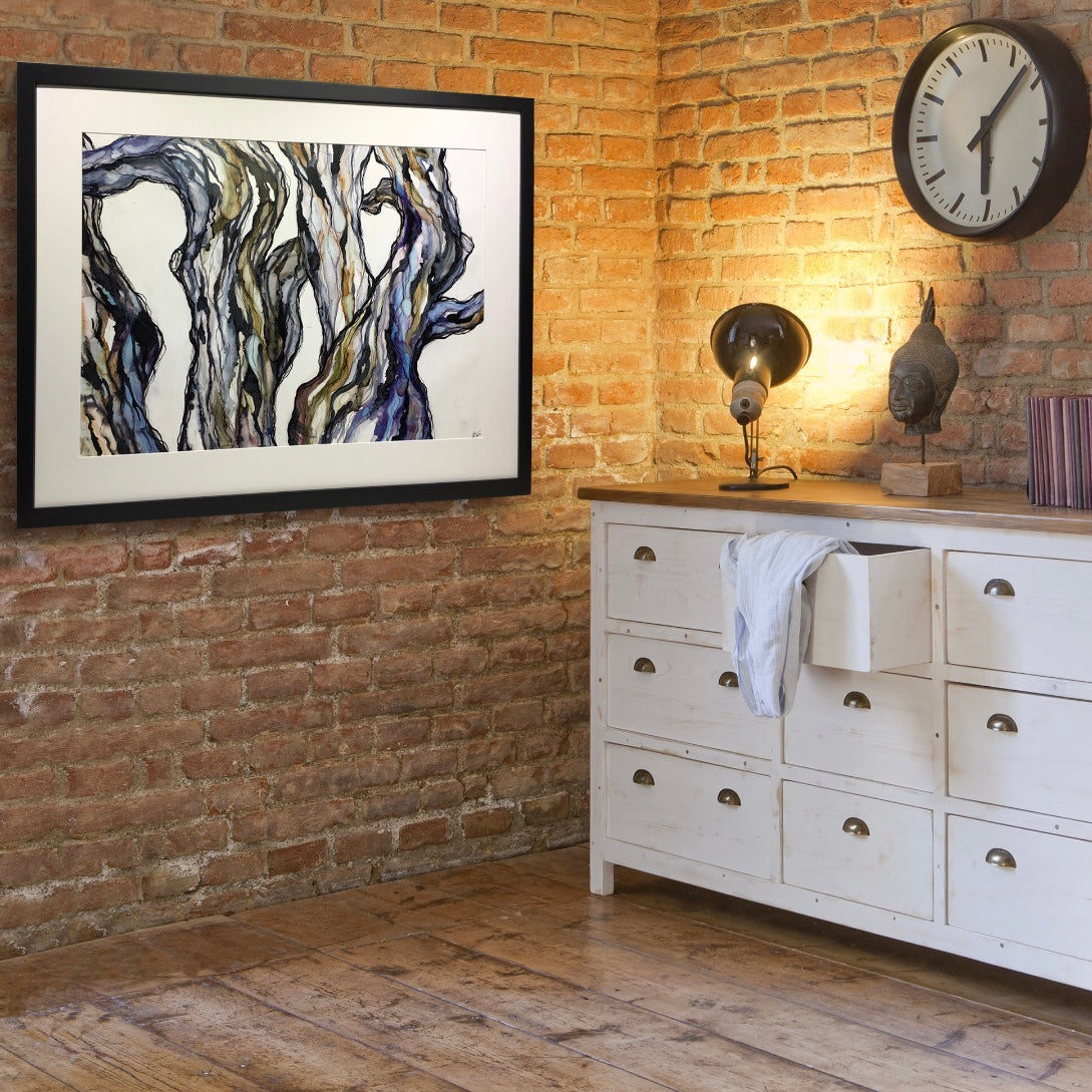Ink on Paper - Framed in Black Wood Frame